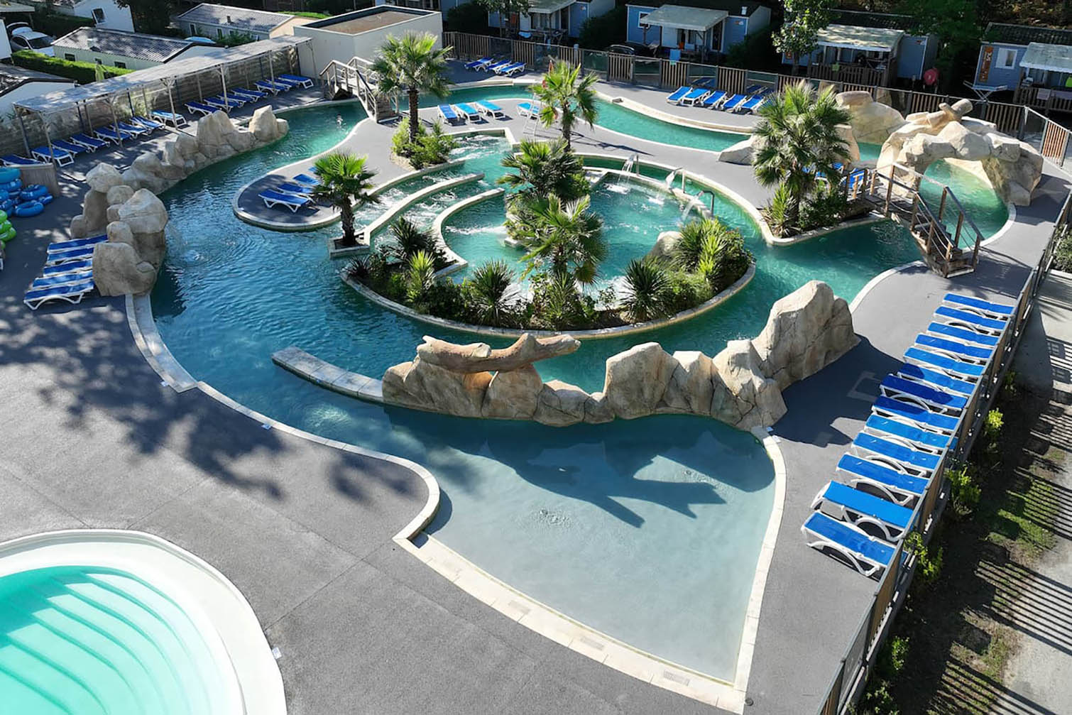 Au camping Lou Pignada, la piscine se distingue par un décor unique et immersif, agrémenté de faux rochers conçus sur mesure. Ces éléments décoratifs, méticuleusement réalisés, créent une ambiance tropicale qui s’étend sur plusieurs mètres carrés, offrant aux vacanciers une expérience dépaysante et relaxante.