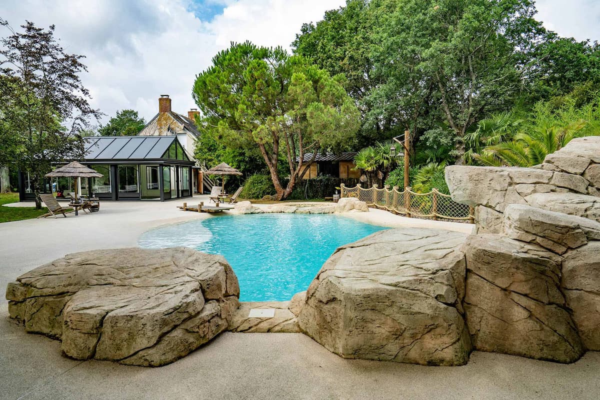 Création sur-mesure d’une cascade en faux rochers sculptés en mortier, apportant une ambiance apaisante et un réalisme saisissant. Les clients souhaitaient recréer une ambiance apaisante avec le doux bruit d’une cascade, sans quitter le confort de leur maison.